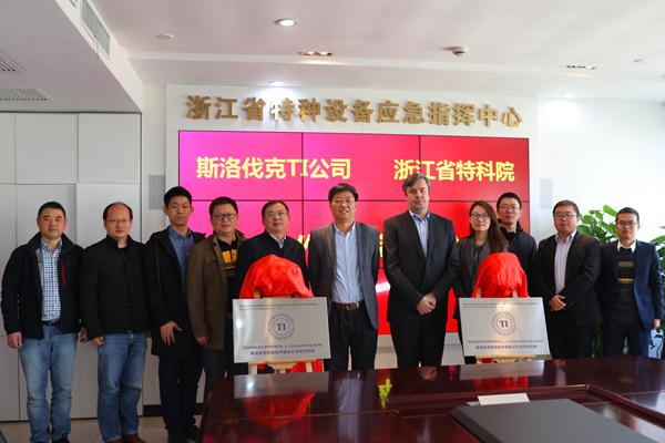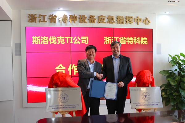 2019年11月19日,斯洛伐克TI认定浙江特种设备科学研究院为“国家电梯产品质量监督检验中心合作机构”和“国家特种金属结构材料质量监督检验中心合作实验室”,斯洛伐克TI海外总监PETER和浙江省特科院钟海见共同揭牌。